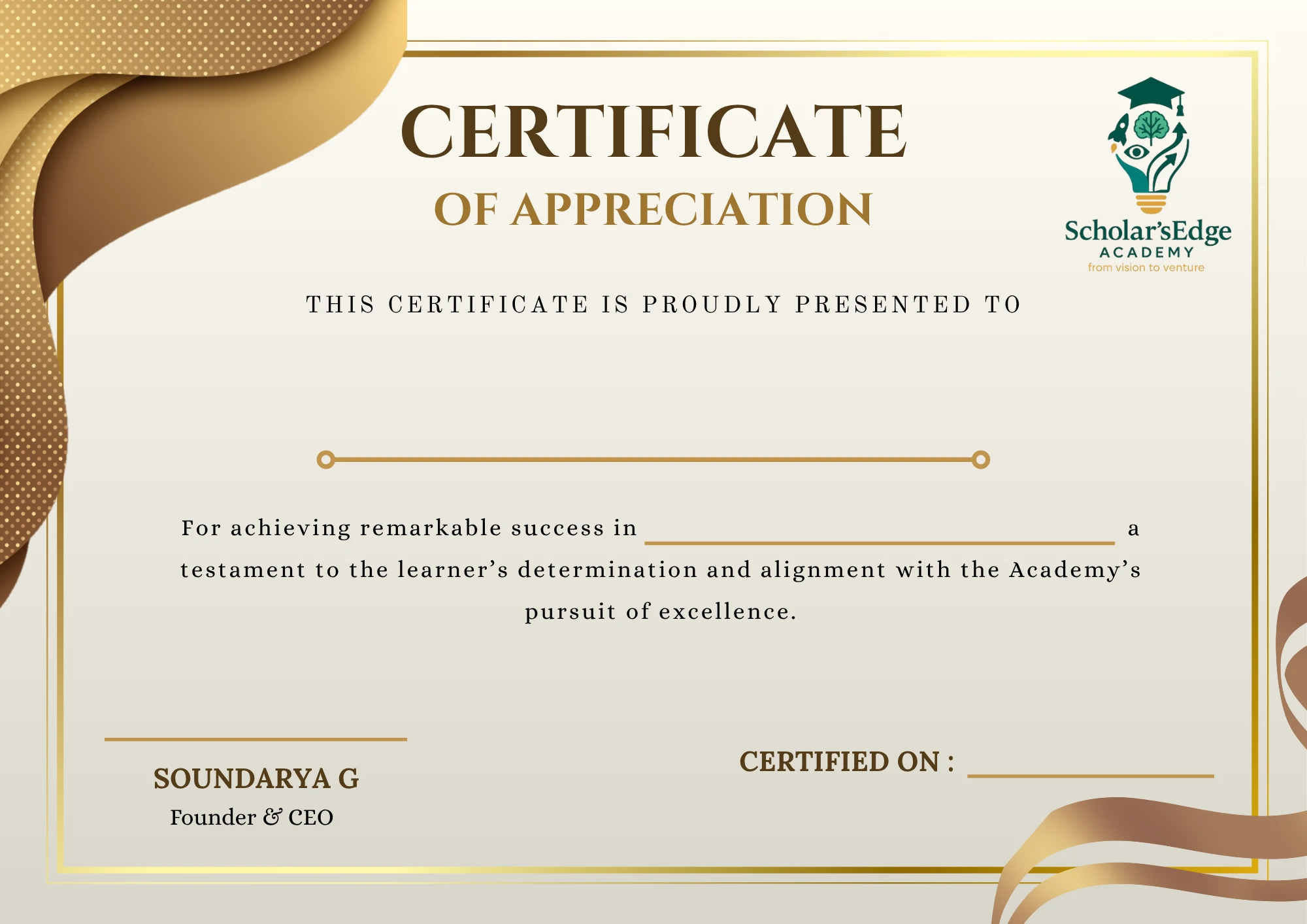 At Scholar’sEdge Academy, a certificate isn’t just proof of completion it’s the beginning of your transformation. It’s your badge of discipline, curiosity, and drive. With every course, you don’t just learn you level up. Our verified certificates, uniquely numbered and digitally sharable, mark your growth and signal to the world: “I’m ready.”